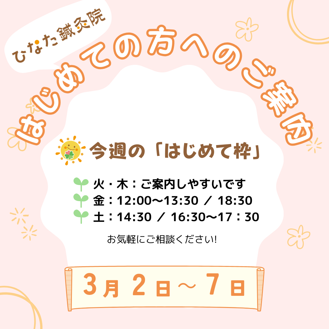 【はじめての方へ】今週の「はじめて枠」ご案内🌿3/2~7 2026年03月02日
