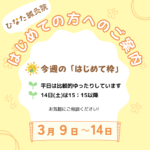 【はじめての方へ】今週の「はじめて枠」ご案内🌿3/9~14 2026年03月10日